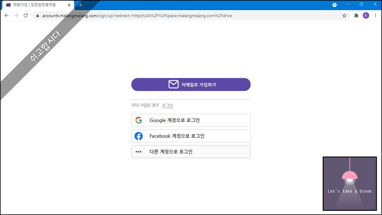 구글, 페이스북 등으로 간편 가입후 계정 로그인을 진행합니다.