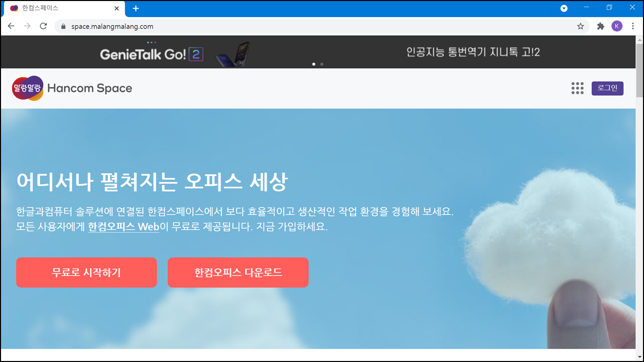 아래 링크한 한컴스페이스 사이트에 접속합니다.