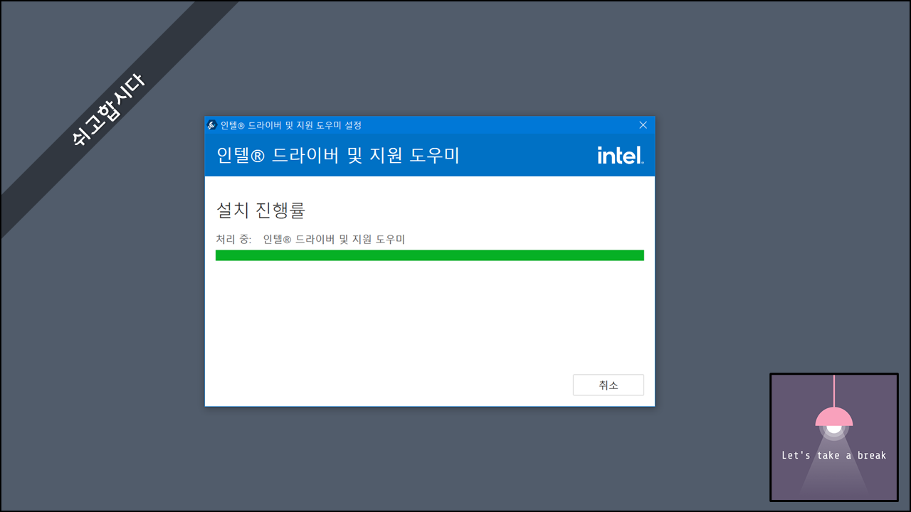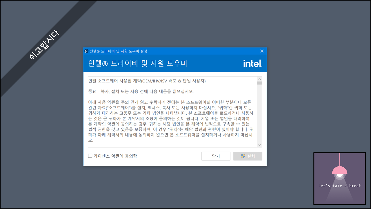 4. 다운로드 받은 설치파일을 실행하여 드라이버 및 지원 도우미 설치를 시작합니다.