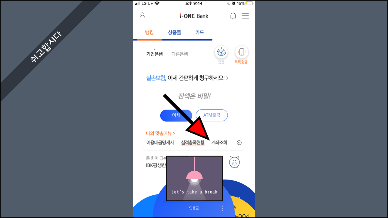 1. i-ONE Bank을 열어서 계좌조회를 터치합니다.
