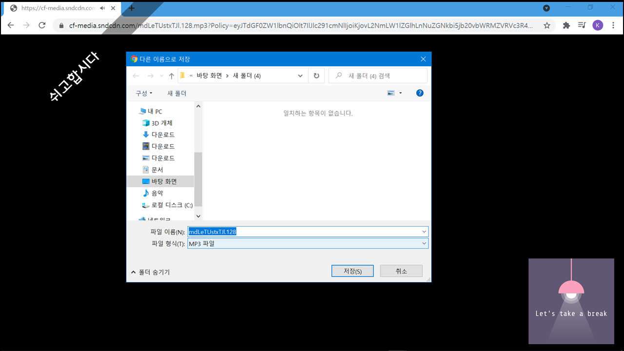 7. 새탭에서 오디오 재생플레이어가 표시되면 그것을 마우스 오른쪽 버튼으로 클릭합니다.