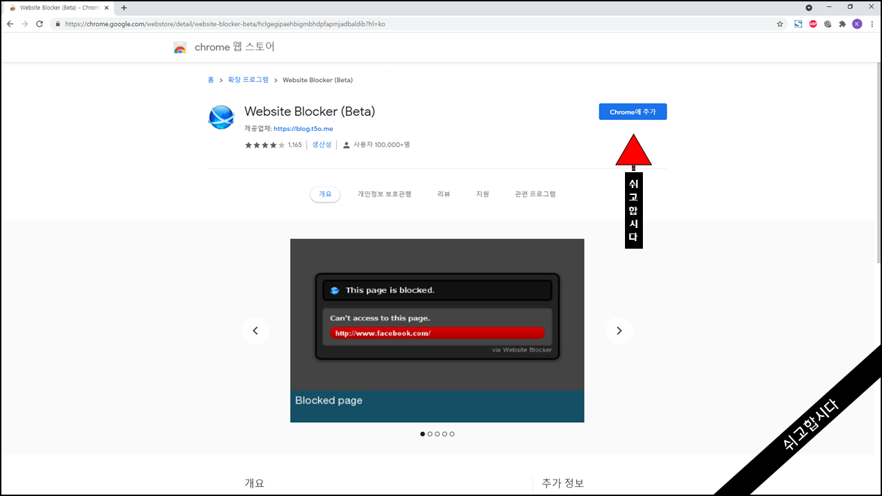 ▶️Web Site Blocker 다운로드 페이지에 접속하여 확장 프로그램을 추가합니다.