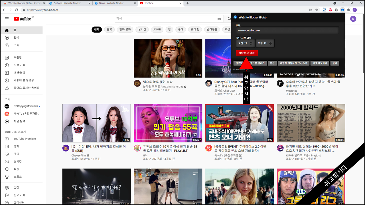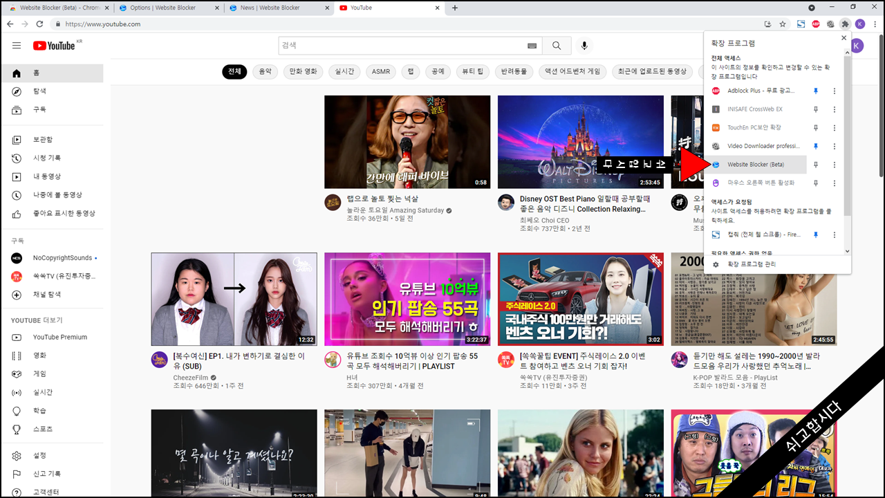 ▶️확장 프로그램 아이콘을 클릭하여 Web Site Blocker를 선택합니다.