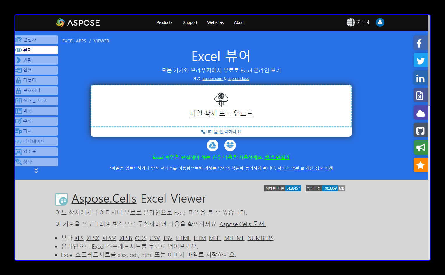 ASPOSE 웹사이트 바로가기 : https://products.aspose.app/cells/ko/viewer